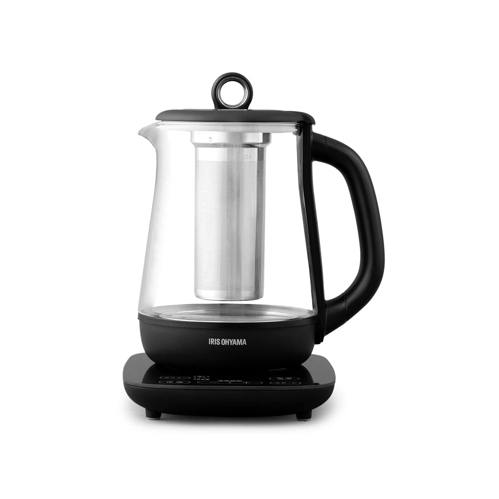 アイリスオーヤマ 電気ケトル ガラスタイプ 1.5L 9段階温度調節付 保温設定付 沸騰後自動OFF フィルター掃除可能 茶こし付 ブラック IKE-G1500T-B