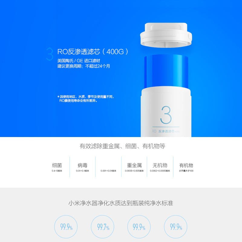 小米净水器滤芯3号滤芯PP棉前置后置活性炭RO反渗透1号2号3号4号厨上式厨下400G仅适用于小米净水器400G
