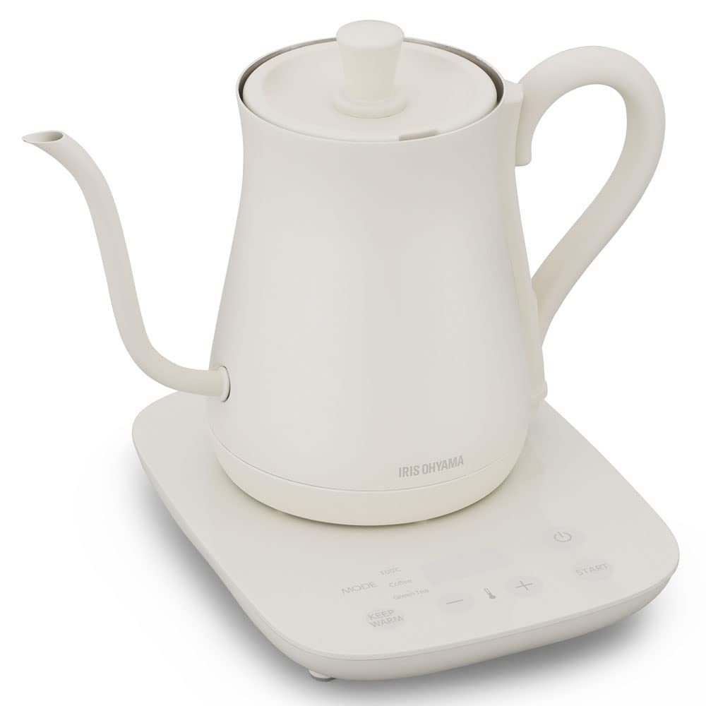 アイリスオーヤマ(IRIS OHYAMA) 電気ケトル 温度調節 ドリップケトル ケトル 600ml 10段階温度調節付 保温設定付 沸騰後自動電源OFF コーヒー 紅茶 緑茶 おしゃれ IKEC601TCW ホワイト