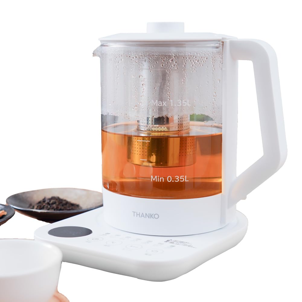 ガラスケトル 温度調節 保温 THANKO 煮出し&温度調整ができる電気ティーポット TERGALHWH