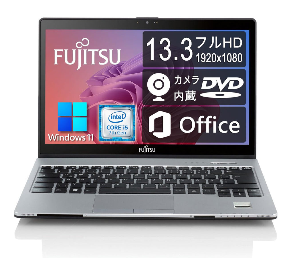 富士通 LIFEBOOK S937 ■13.3型FHD(1920x1080) / Win11搭載 / 第7世代Core i5(2.6GHz) / 8GBメモリ / SSD 512GB / Webカメラ内蔵 / DVDマルチ / Office H&B 2019