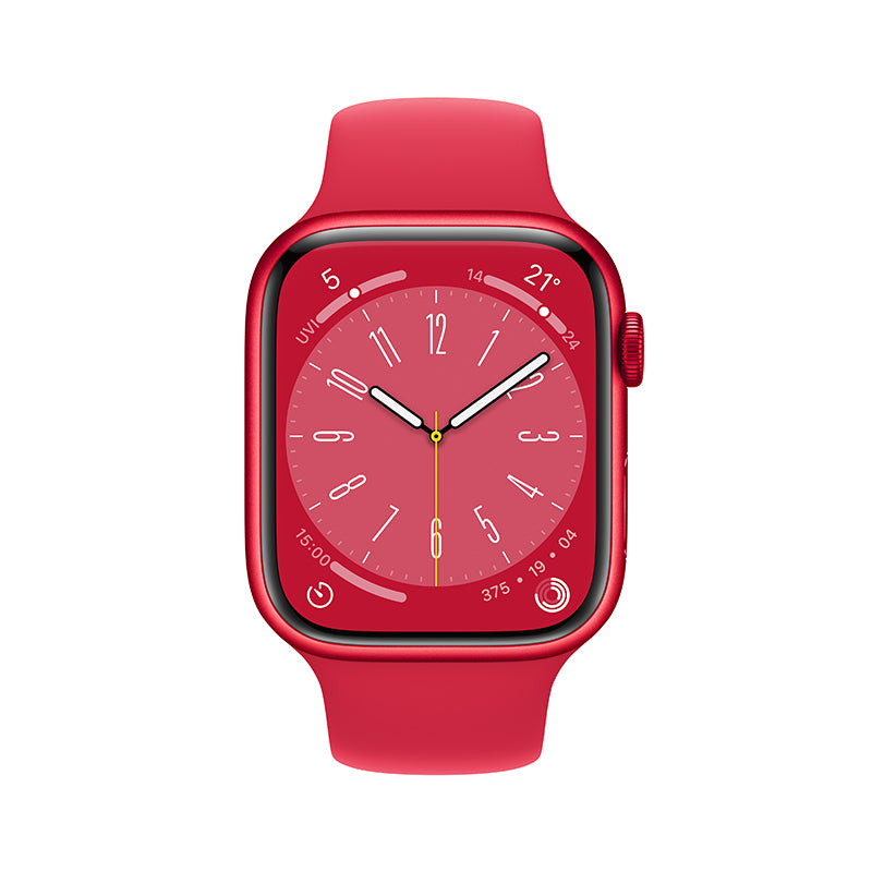 Apple Watch Series 8 智能手表 GPS版 45mm 红色铝金属表壳 运动型表带多彩表盘 大尺寸视网膜显示屏 健康监测 运动健身好帮手